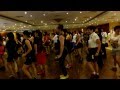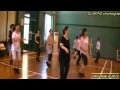1,2                          Drag right leg diagonal back, move left leg beside right (Clap your